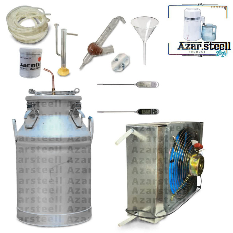 پک کامل دستگاه عرقگیر گلابگیر تقطیر برقی کندانسور لوله شیشه ای پیرکس سردکن