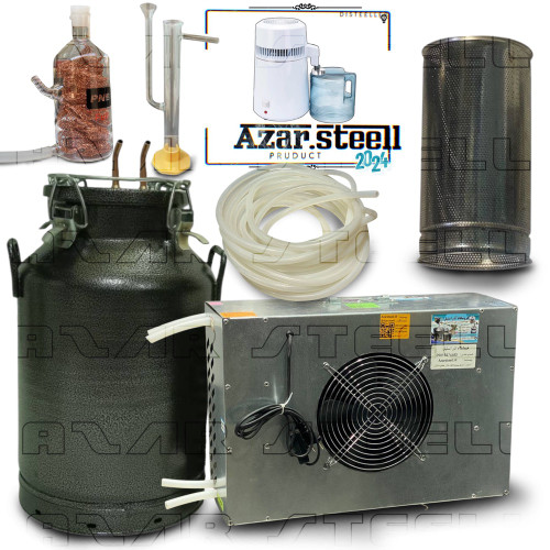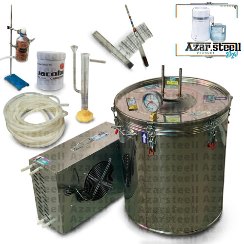 عرقگیر گلابگیر دستگاه تقطیر تمام استیل ۳۱۶ برقی فن دار و مخزن ۳۰۴ و ویگرو بالنی ( پک حرفه ای )