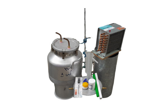 مخزن تمام استیل و کندانسور شیشه ای پیرکس و تفاله گیر و هیدرومتر ... ( فول پک )